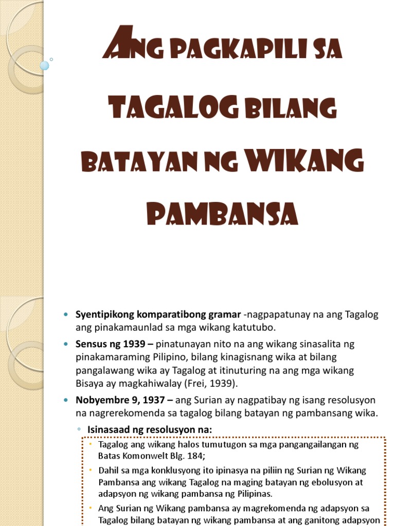 Ang Pagkapili Sa Tagalog Bilang Batayan Ng Wikang Pdf